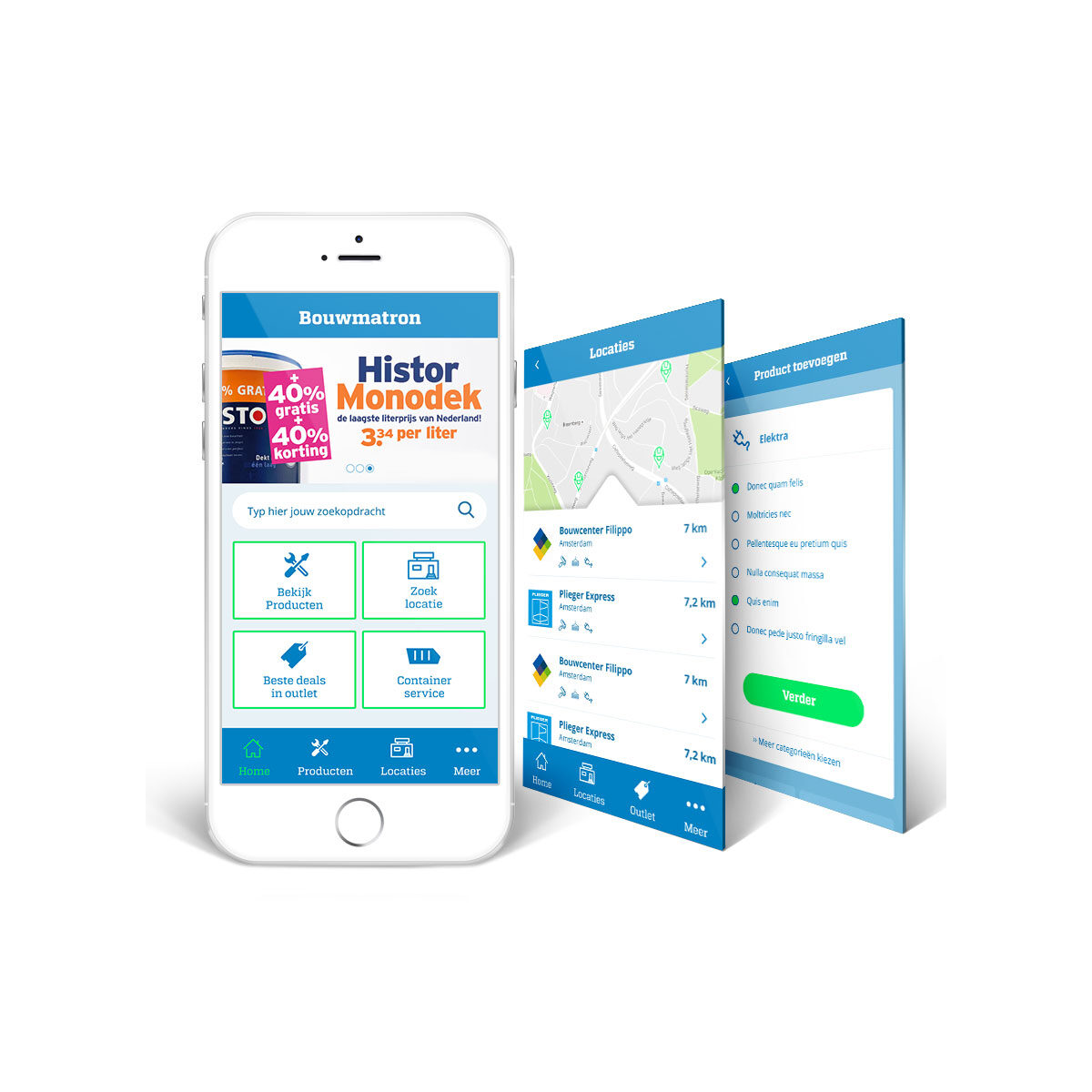 het afhalen van de producten. Dit kan direct via de Bouwmatron